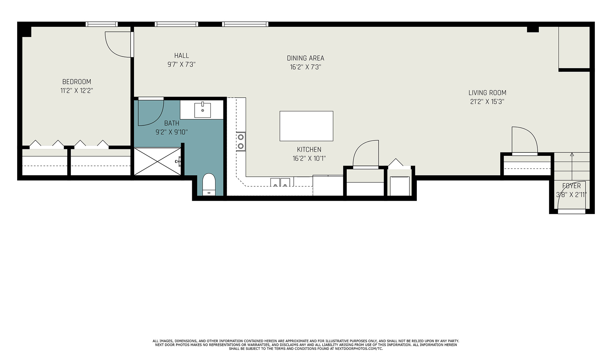 2 Bedroom, 1 Bathroom