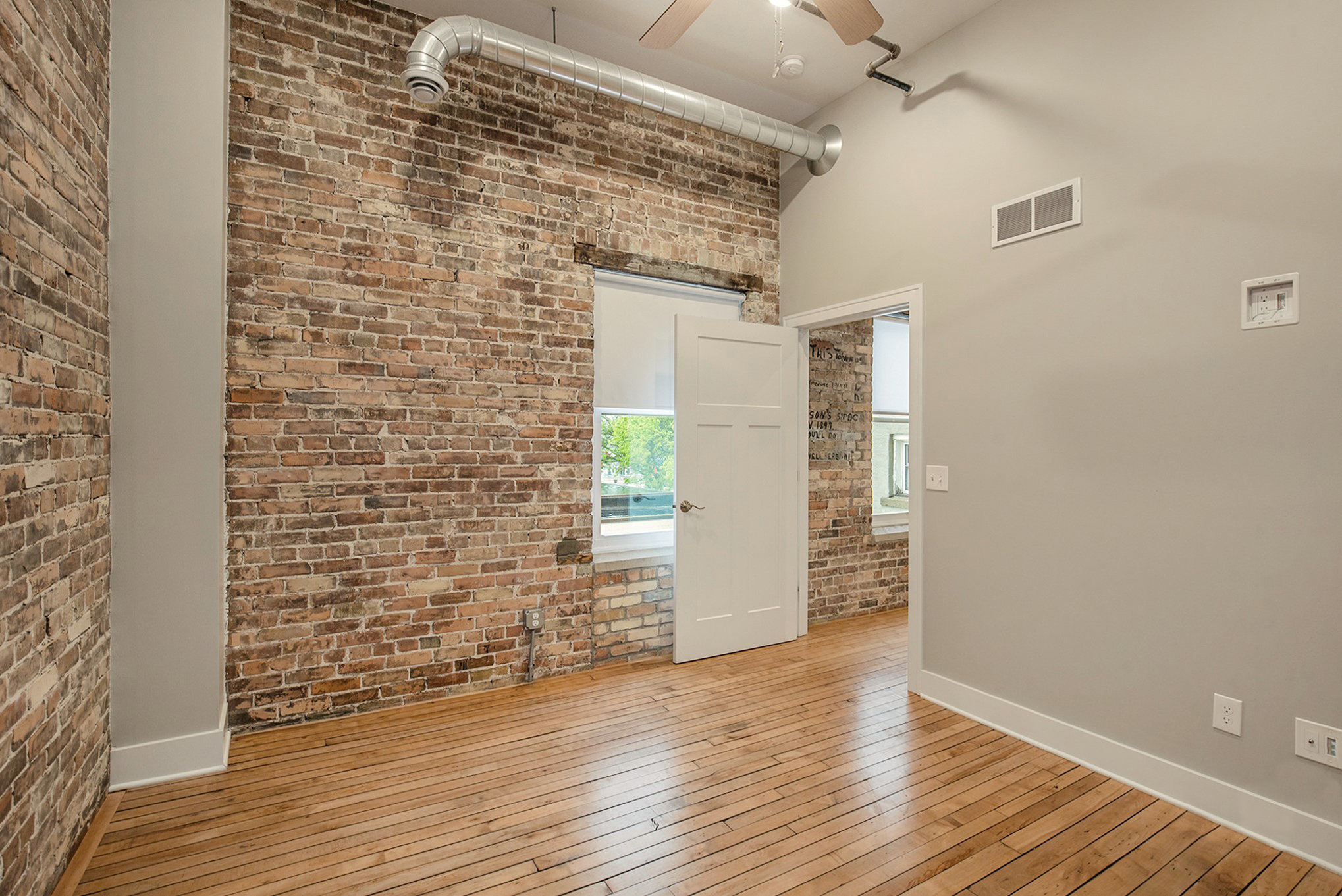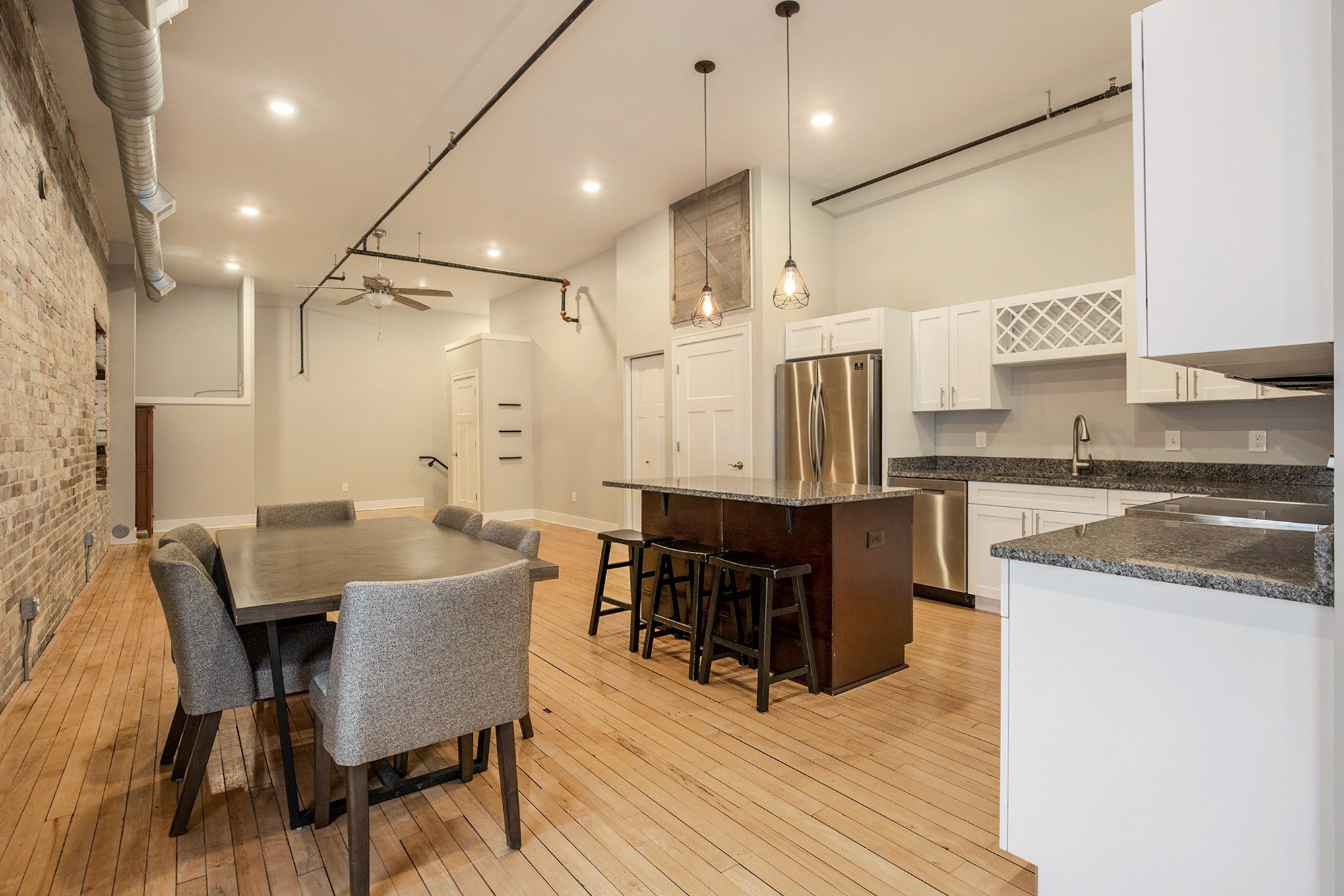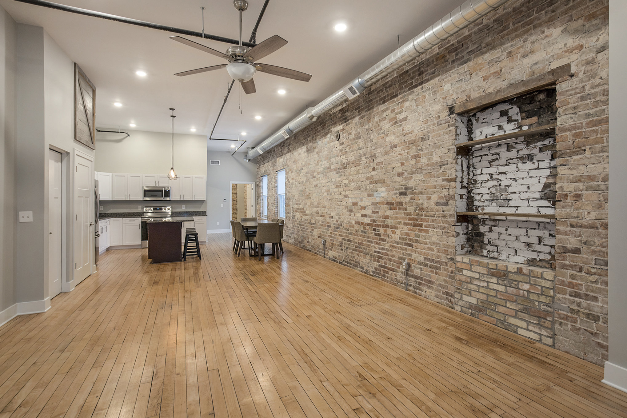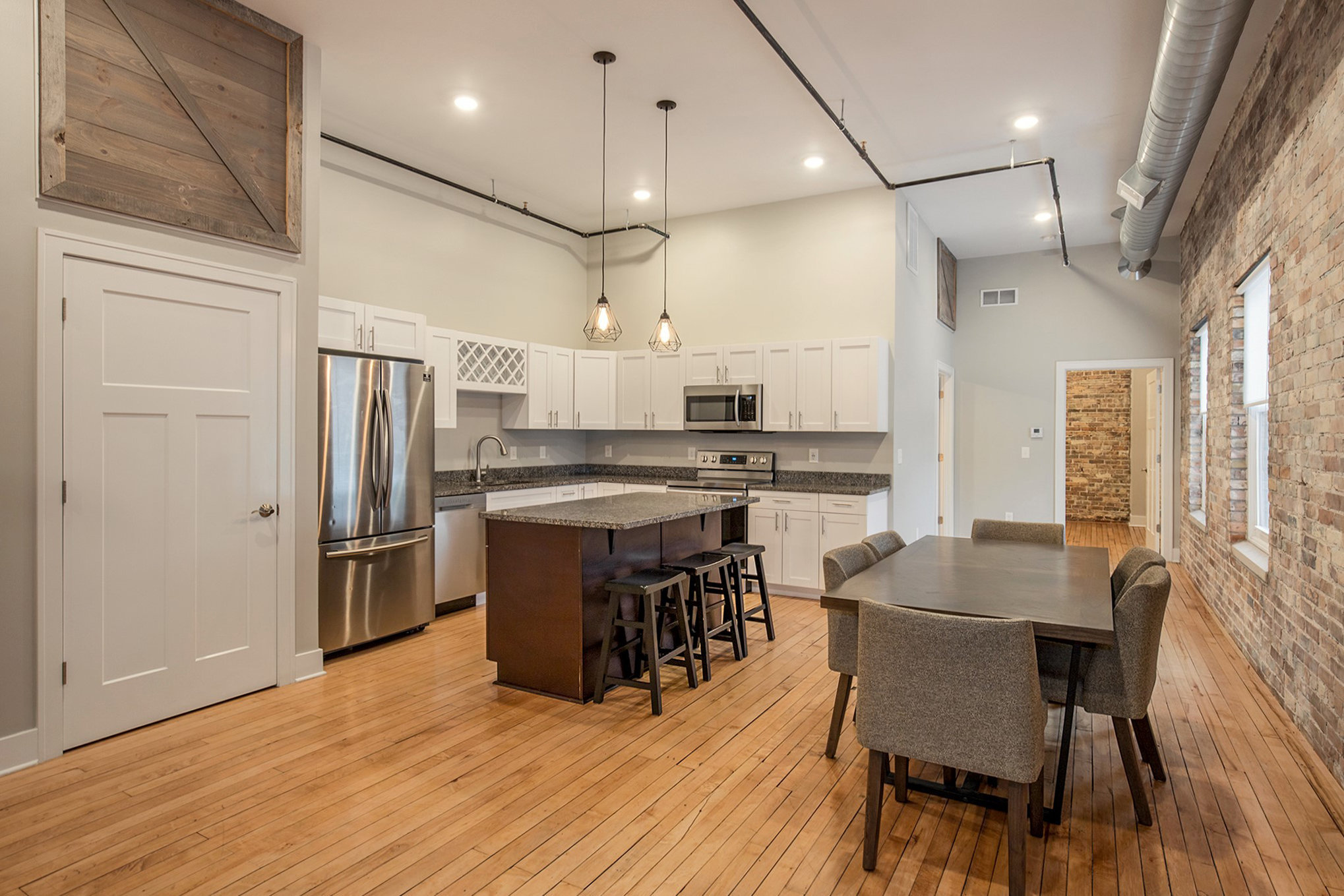 Every loft has beautiful brick walls and high ceilings.