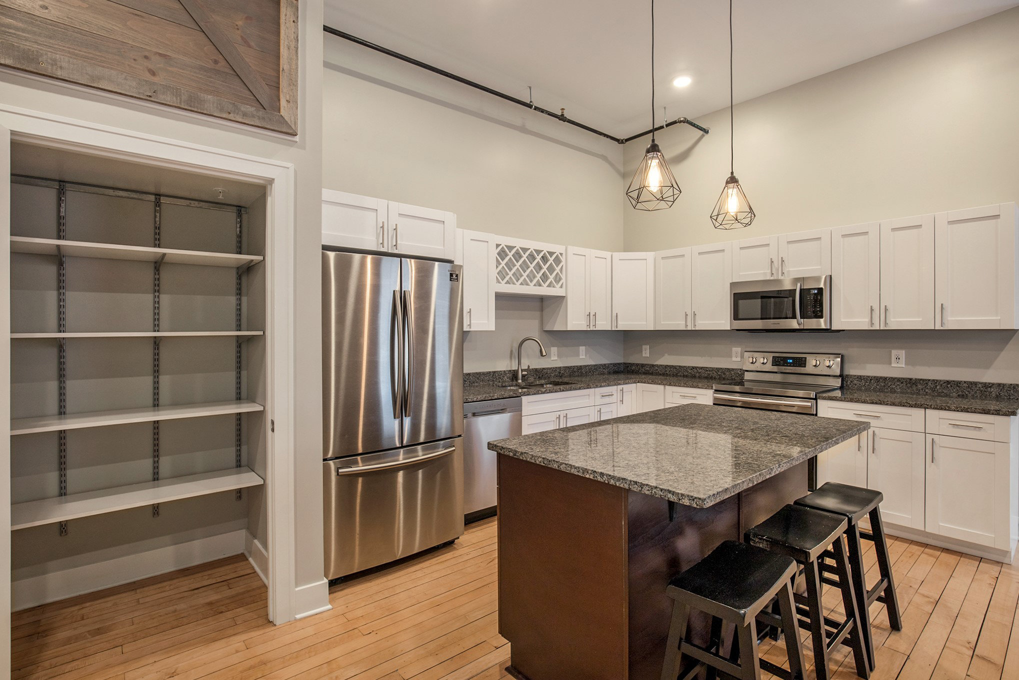 The original hardwood floors bring style and character to each loft.